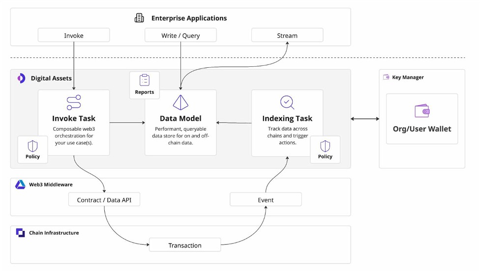 The Digital Assets Data Model solves this. It is a high-performance, structured data store maintained by the Indexing Engine, queryable by enterprise applications via REST APIs, and designed to represent the full state of your asset universe in a format useful for applications rather than chain explorers.