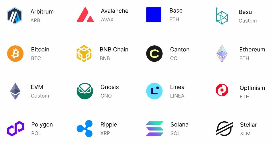Figure 2. Supported chains and protocols across the Kaleido platform.